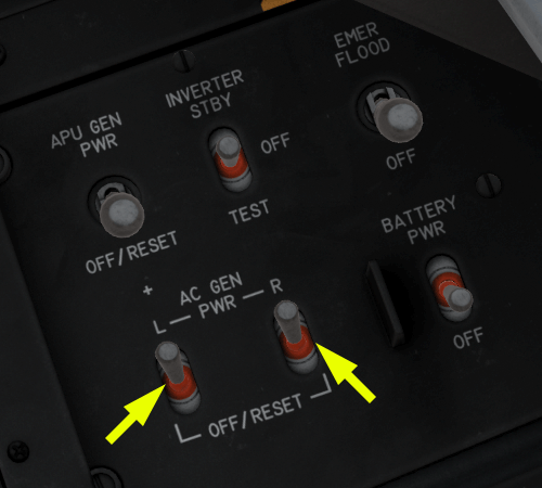 - Aktivierung der beiden Wechselstrom-Generatoren AC GEN (L/R) ... PWR EPP.