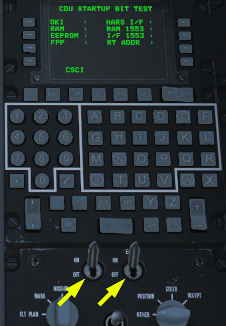 - Den Integrated Flight and Fire Control Computer (IFFCC) in den Testmodus schalten, d. h. in die Mitte IFFCC SW ... TEST VI-L.