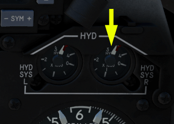 - Wenn das linke Triebwerk sich zu drehen beginnt, baut sich der Hydraulikdruck auf HYD PRESSURE L ... CHECK VI-R.