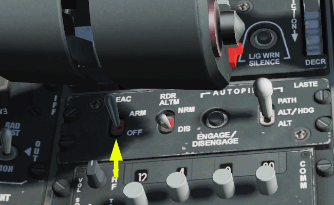 - Der Schalter für das Enhanced Attitude Control System soll aus sein EAC SWITCH ... OFF LASTE.