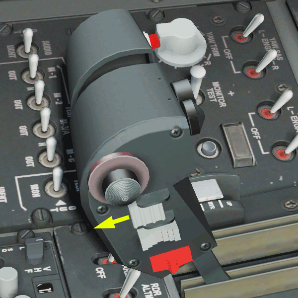 Der Schalter ist im Cockpit nur schwer zu sehen. Es ist der Kippschalter an der Außenkante des linken Schubhebels.