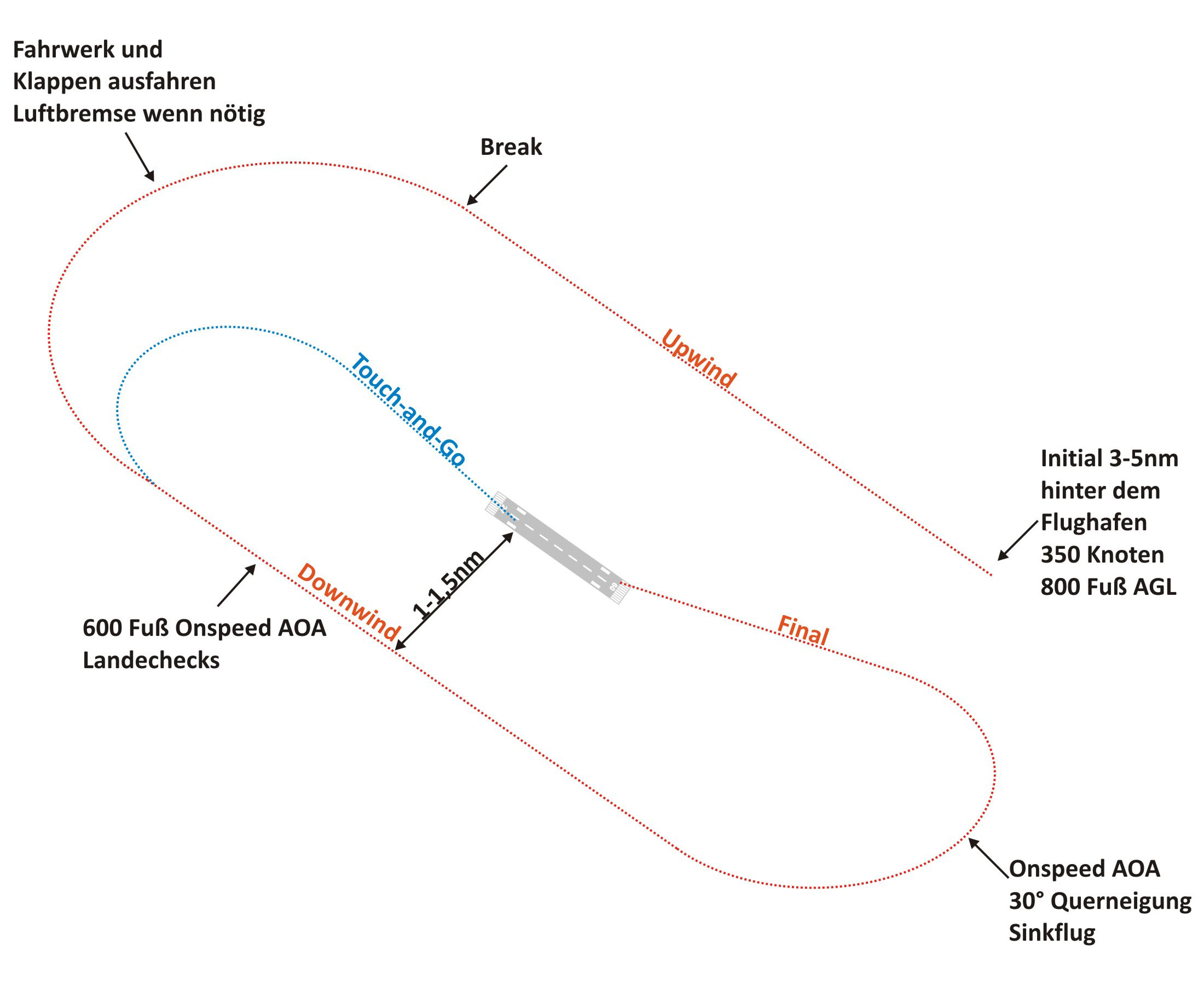 - Er nutzt ein bekanntes Verfahren, dass ihm Zeit gibt, alle Landevorbereitungen zu treffen, und dessen Ablauf ihm nach einiger Übung in Fleisch und Blut übergeht.