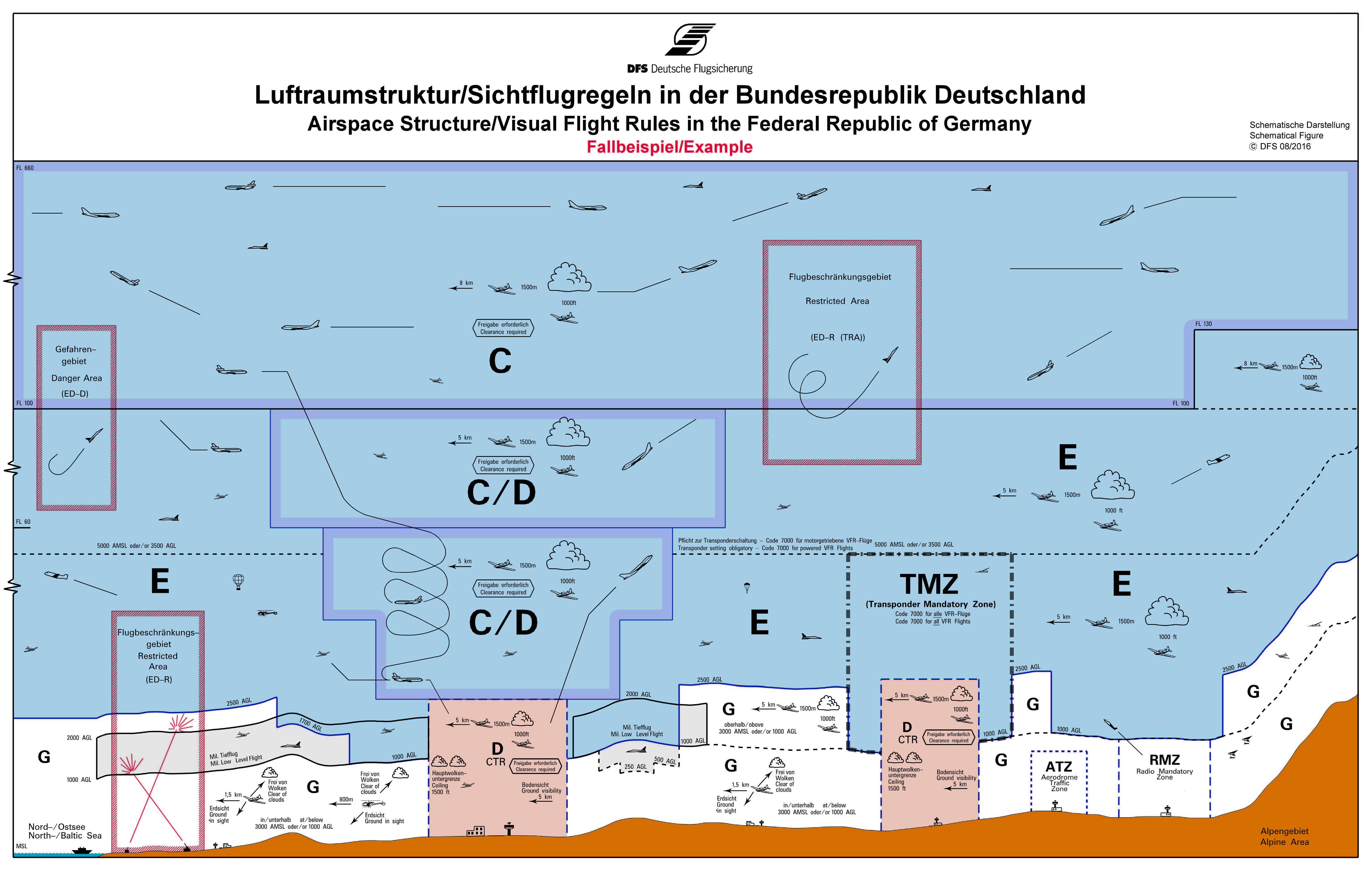 Der Himmel über Deutschland und überall anders auf der Welt ist aufgeteilt in Zonen und es bedarf einer Genehmigung in diesen Zonen zu fliegen. Eine Zone ist dabei sowohl in der Fläche als auch in der Höhe genau definiert und kann sich durchaus auch mit anderen Zonen überschneiden. Die Festlegung erfolgt von der Flugsicherung und in Abhängigkeit schützenswerter Dinge, wie Bauwerken oder auch Naturschutzgebieten sowie Nutzungskonzepten.