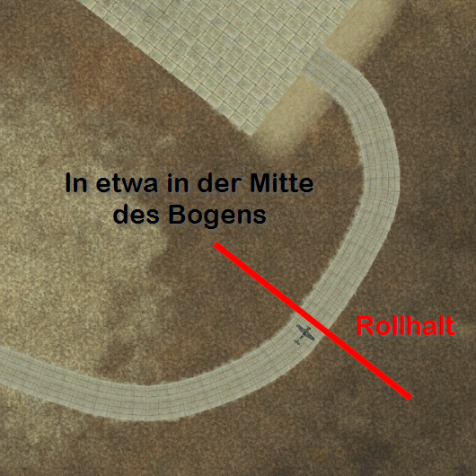 Die weißen Linien dienen nur der Orientierung und Ausrichtung des Bugrades. Gerollt wird mittig auf dem Rollweg. - Die externe Beleuchtung ist immer einzuschalten, um besser gesehen zu werden.