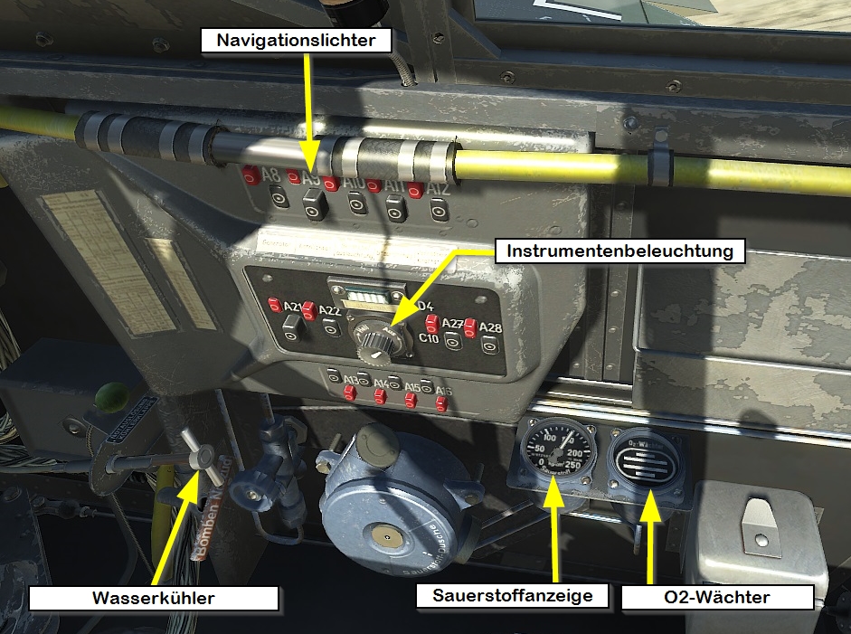 Wir werden im Folgenden alle Instrumente und Schalter benennen.