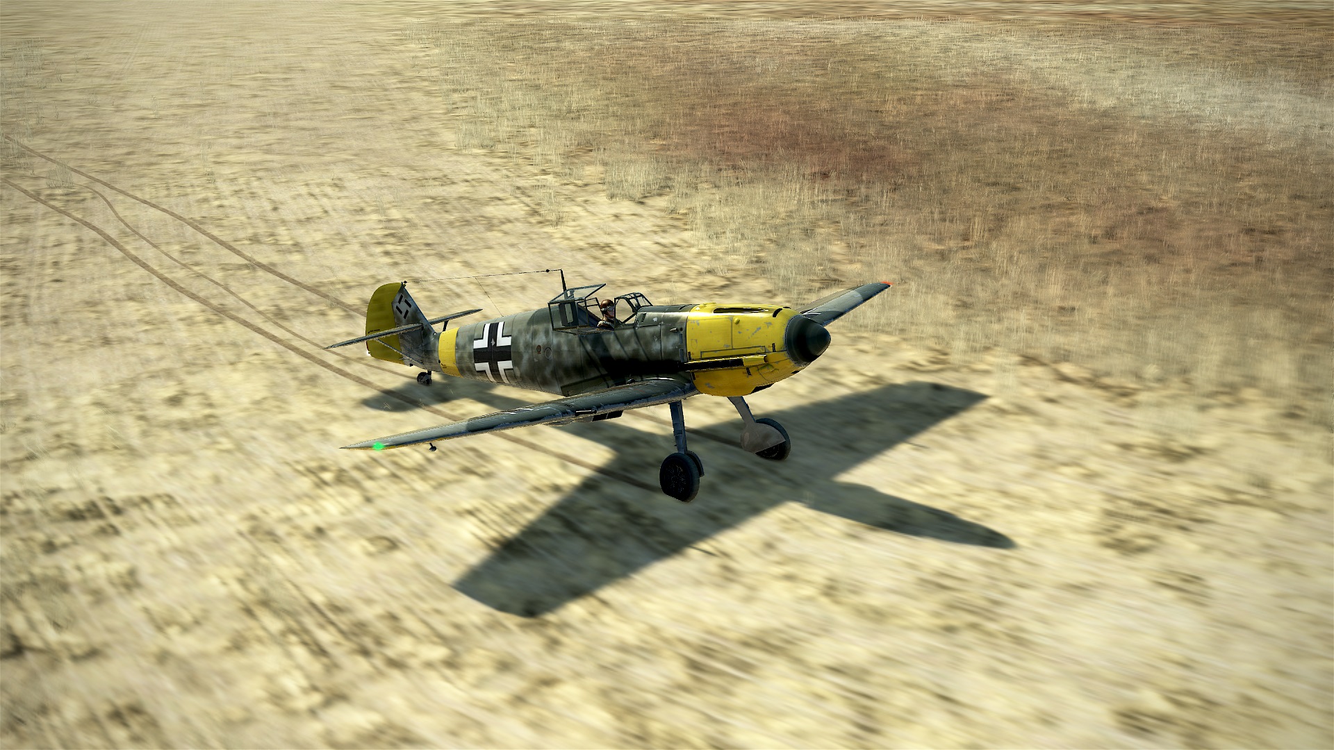 Die Sicht nach vorne in der Bf 109 ist sehr schlecht, daher sollte man im Zickzack rollen, um Unfälle zu vermeiden.