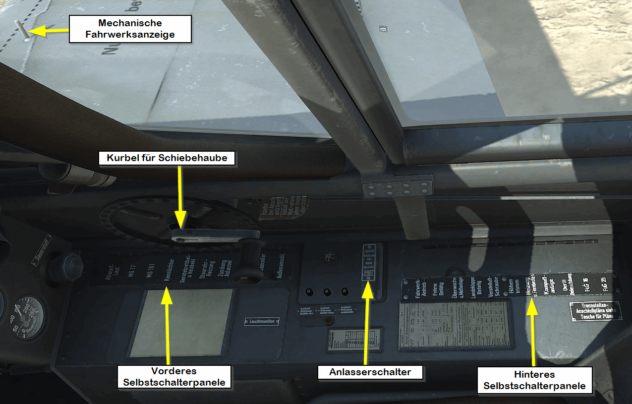 Bei der Fw 190 befinden sich auf der rechten Konsole verschiedene Systeme, die aber bei IL-2 vom Spiel verwaltet werden, d. h. während man bei DCS die Selbstschalterpanele öffnen und die richtigen Knöpfe drücken muss, um den Motor zu starten, läuft das bei IL-2 nach Drücken der E-Taste alles automatisch ab. Daher ist die rechte Konsole bei IL-2 uninteressant.