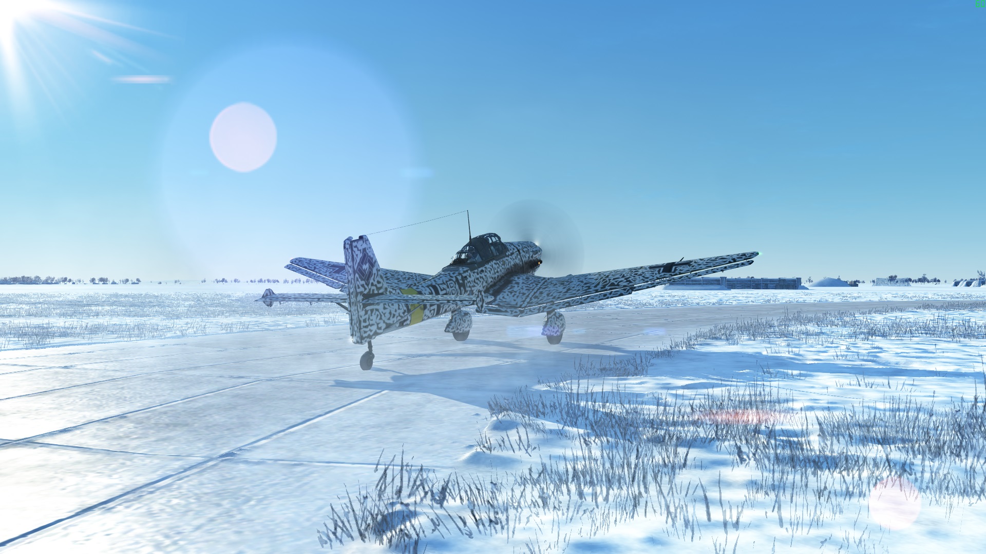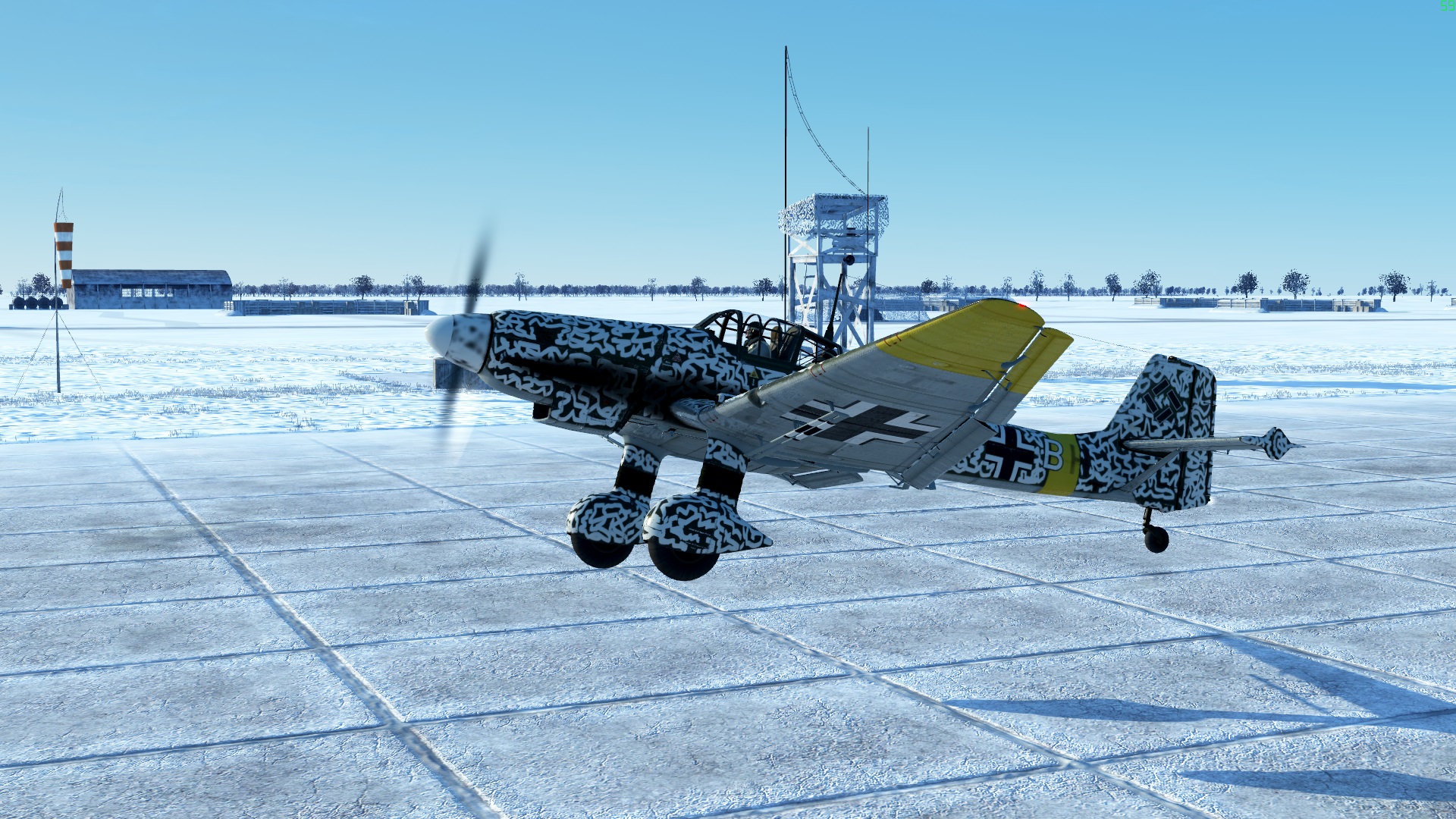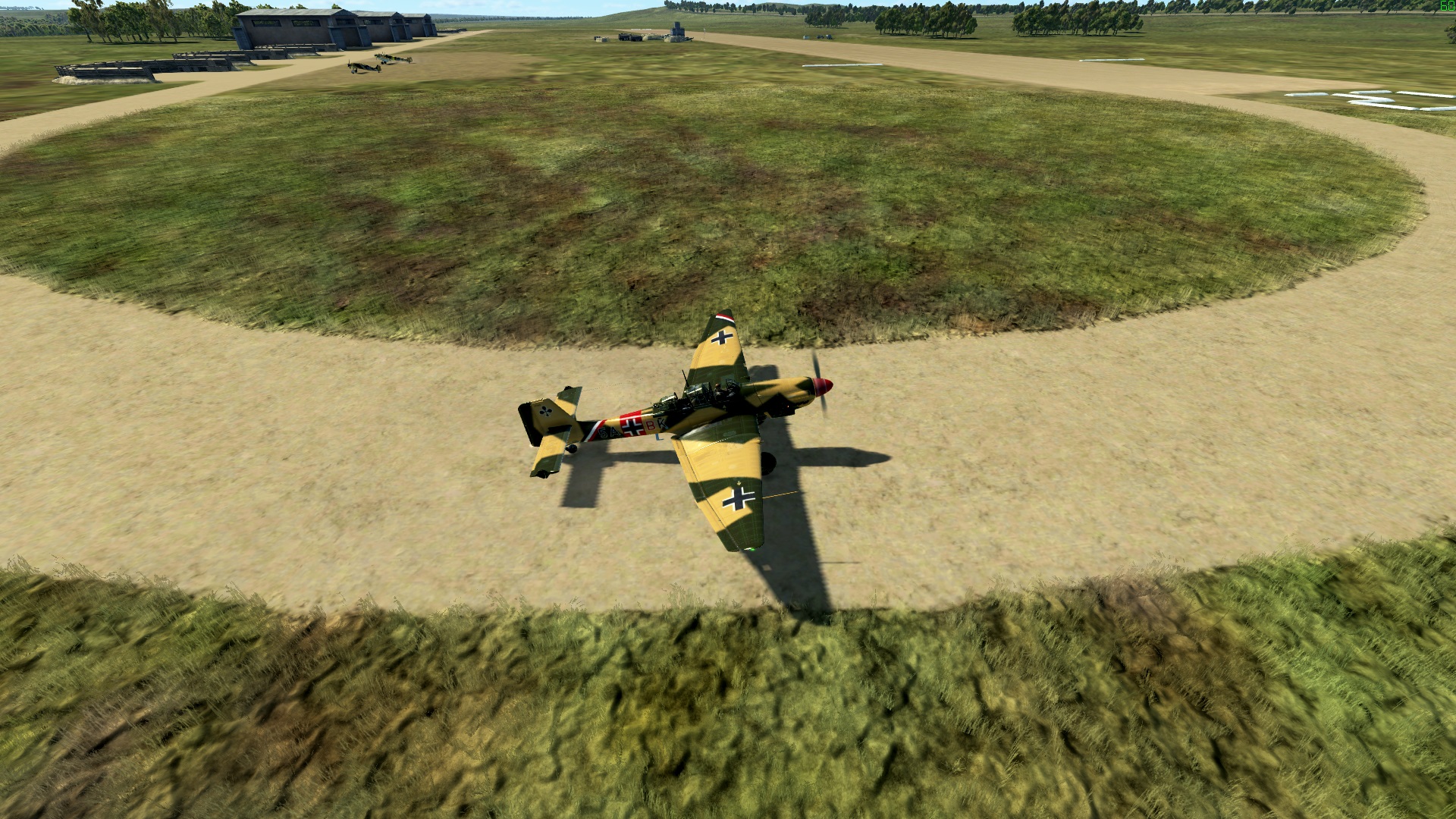 Gesteuert wird die Ju 87 durch Betätigen der Seitenruder und linken/rechten Radbremse. Allerdings muss man das mit Gefühl machen. Passt man nicht auf, dreht sich die Maschine gerne. Es ist nicht ganz so schlimm wie bei einem leichten Jäger, aber schwerer als bei der Bf 110.