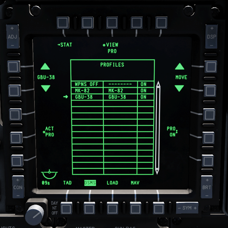 Für jede Waffenart wird bei der A-10C automatisch ein Standard-Profil mit Standard-Einstellungen erstellt.
