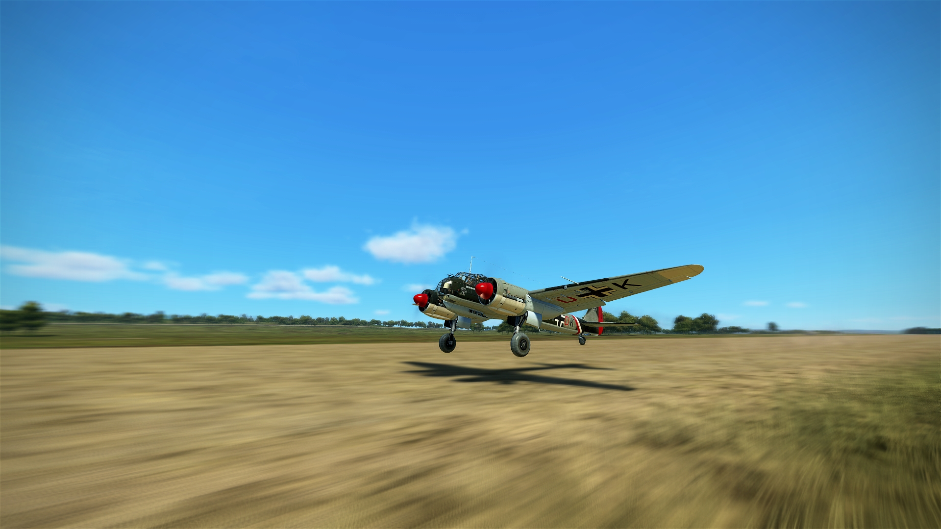 Das Heckrad der Ju 88 ist nicht arretierbar. Zwar ist die Maschine somit am Boden auch durch enge Kurven manövrierbar, jedoch solltest du aufpassen, dass sich das Flugzeug nicht unkontrolliert wegdreht. Am Boden ist es empfehlenswert, am Höhenruder zu ziehen, um einen höheren Anpressdruck auf das Spornrad auszuüben.
