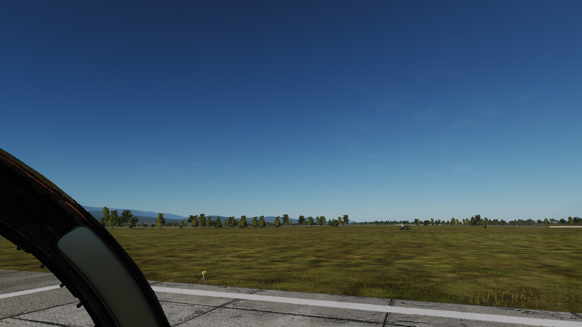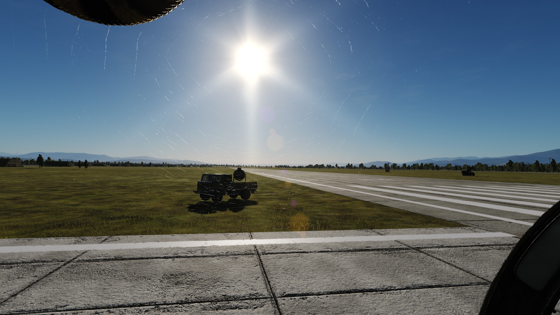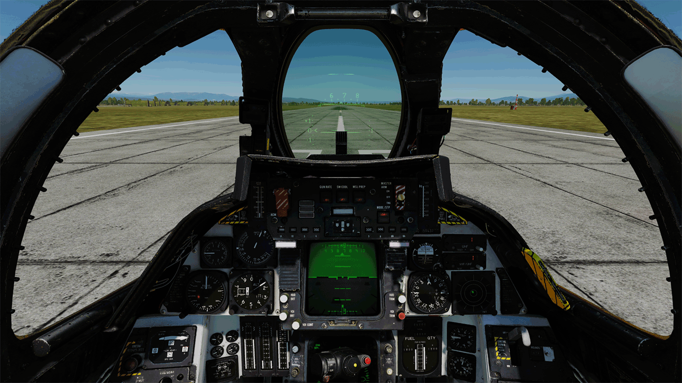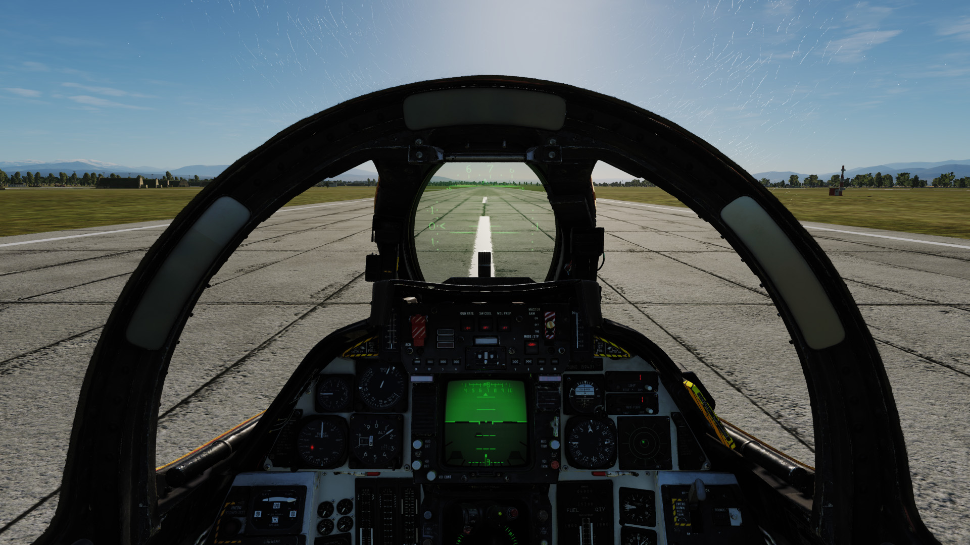 Das Anheben der Flugzeugnase kurz vor dem Aufsetzen ("flaren" genannt), wie es z. B. bei der A-10C üblich ist, wird hier unterlassen. - Berührt das Fahrwerk den Boden, geht der Schubregler in die Leerlaufposition.