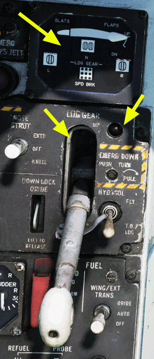 - Bei ca. 250 Knoten fährst du das Fahrwerk aus GEAR DOWN.
