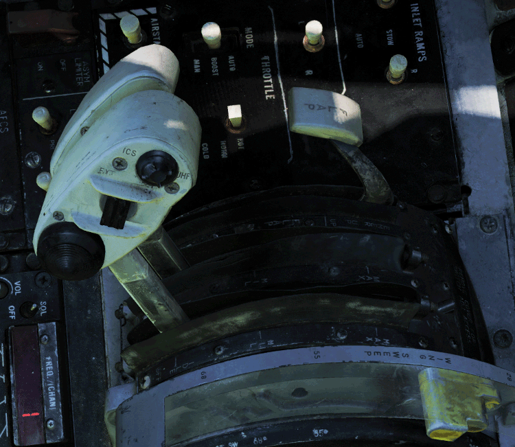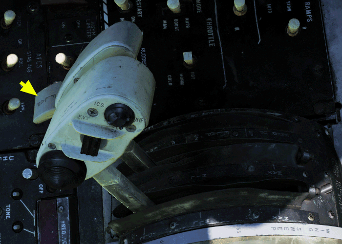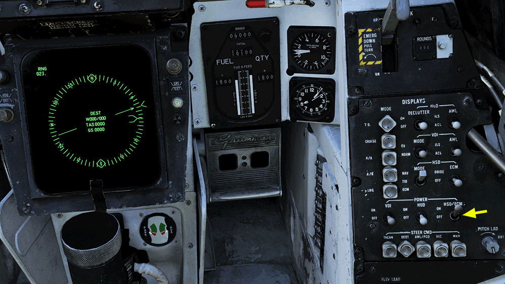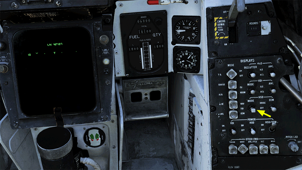 - Blende den Steuerknüppel mittels Rückschritttaste aus, um freie Sicht auf das HSD zu haben HIDE CONTROL STICK MK-U
