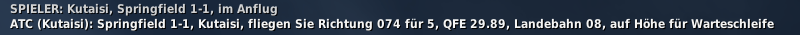 ATC (Kutaisi): Springfield 1-1, Kutaisi, fliegen Sie Richtung 074 für 5, QFE 29.89, Landebahn 08, auf Höhe für Warteschleife.