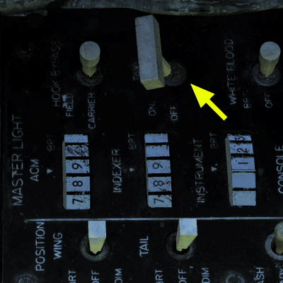- Schalte die Taxi-Lichter ein, da die Tomcat kein Landelicht hat TAXI LIGHT ON.