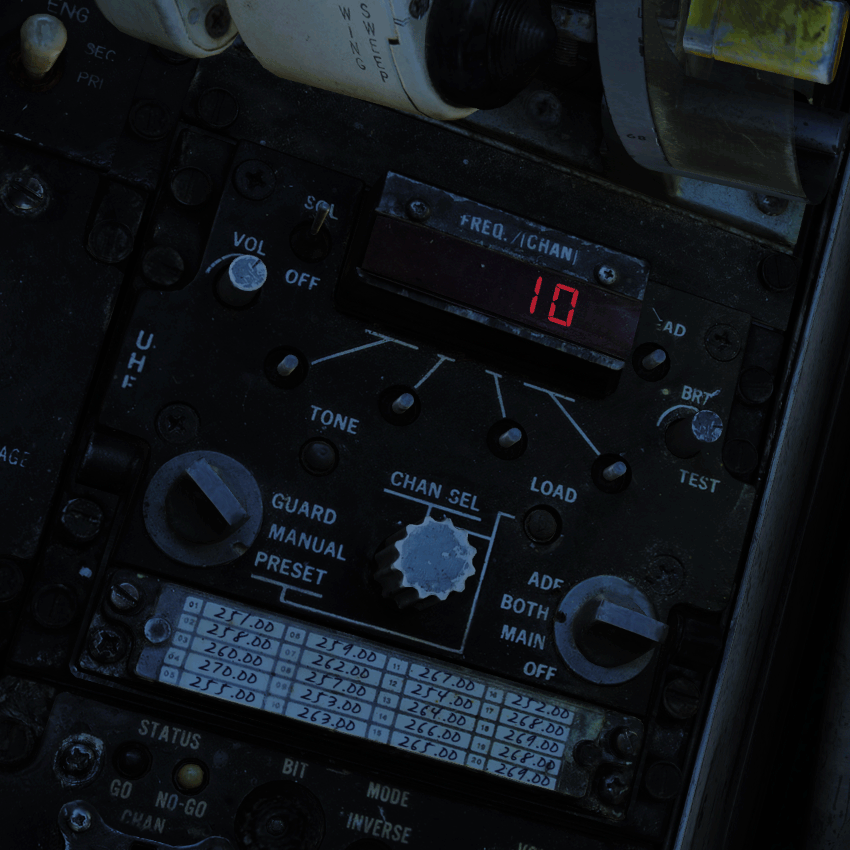 - Schalte das UHF 1 (AN/ARC-159) Funkgerät ein und konfiguriere es UHF 1 BOTH, UHF 1 SET SKL-V.