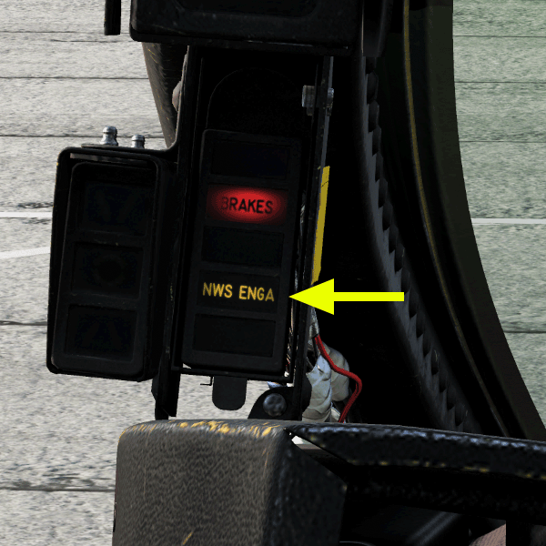 - Bei < 100 Knoten Bugfahrwerk (Nose Wheel Steering) wieder einschalten NWS ON.