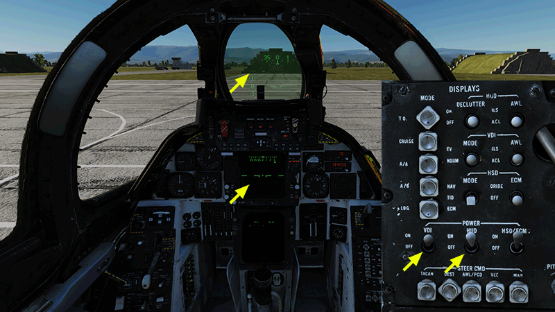 - Anzeigen und Displays ausschalten VDI / HUD / HSD OFF.