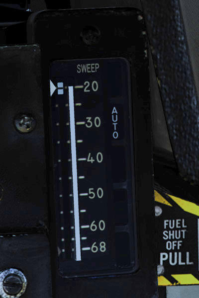 - Flügel manuell einfahren auf 68° WING SWEEP 68°.