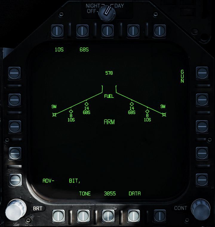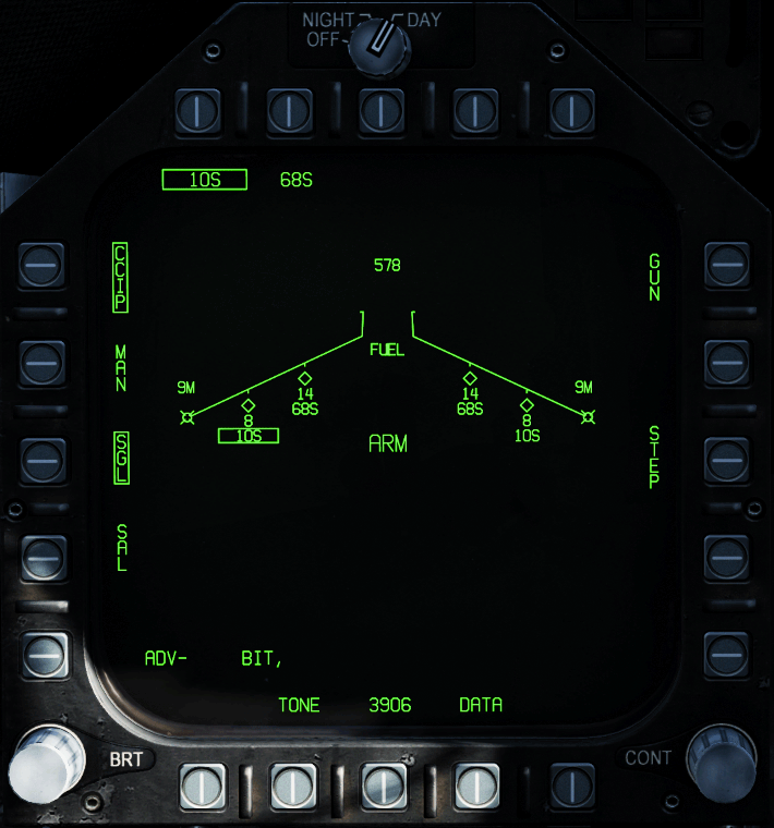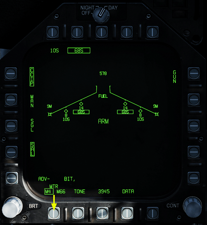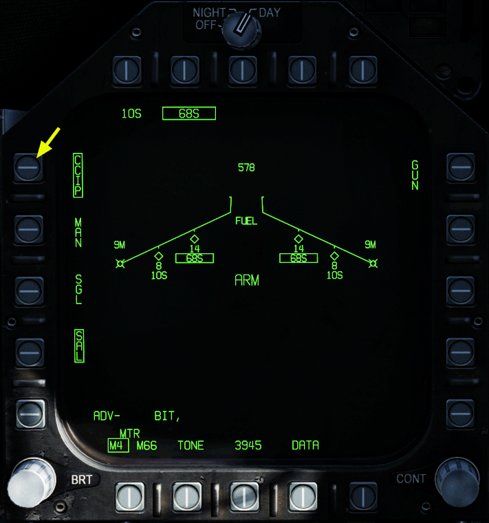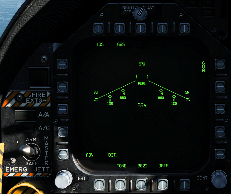 And in the lower right corner, the SIM for training mode is hidden. - Activate lower main mode switch for Air to Ground. (MODE A/G)