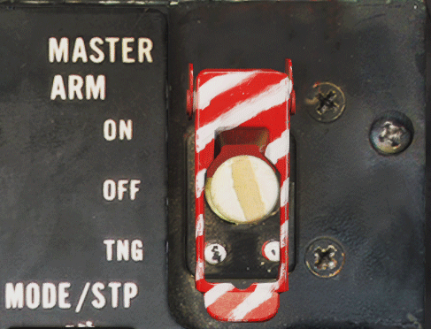 - Aktiviere den Waffenhauptschalter, indem du die Sicherheitsabdeckung öffnest und den Kippschalter in die obere Position bringst MASTER ARM.
