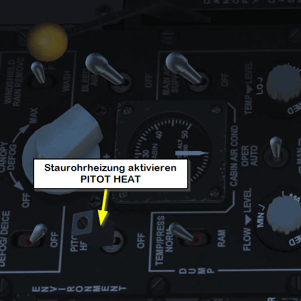 • Aktivierung der Staurohrheizung PITOT HEAT RK-M-ESP.