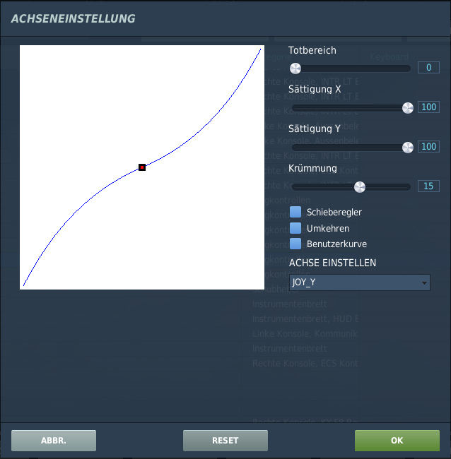 | Flying: control stick, aileron | roller Axis - Aileron | Recommendation: Curvature 15 |