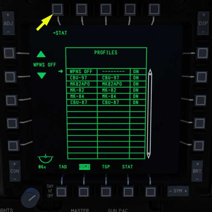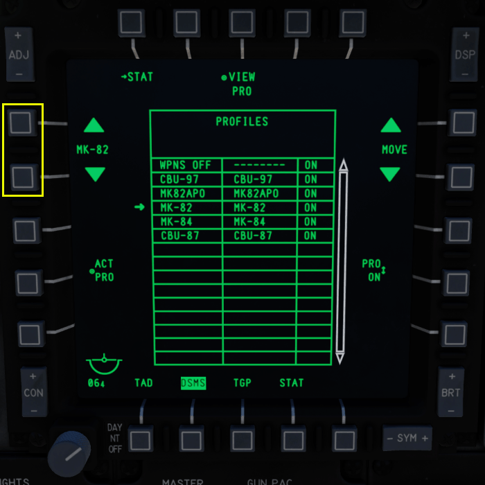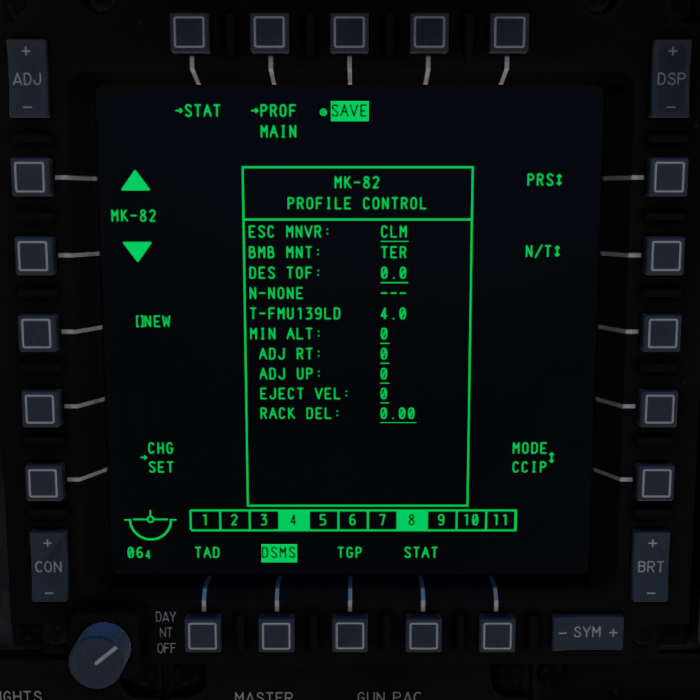 Für jede Waffenart wird bei der A-10C automatisch ein Standard-Profil mit Standard-Einstellungen erstellt.