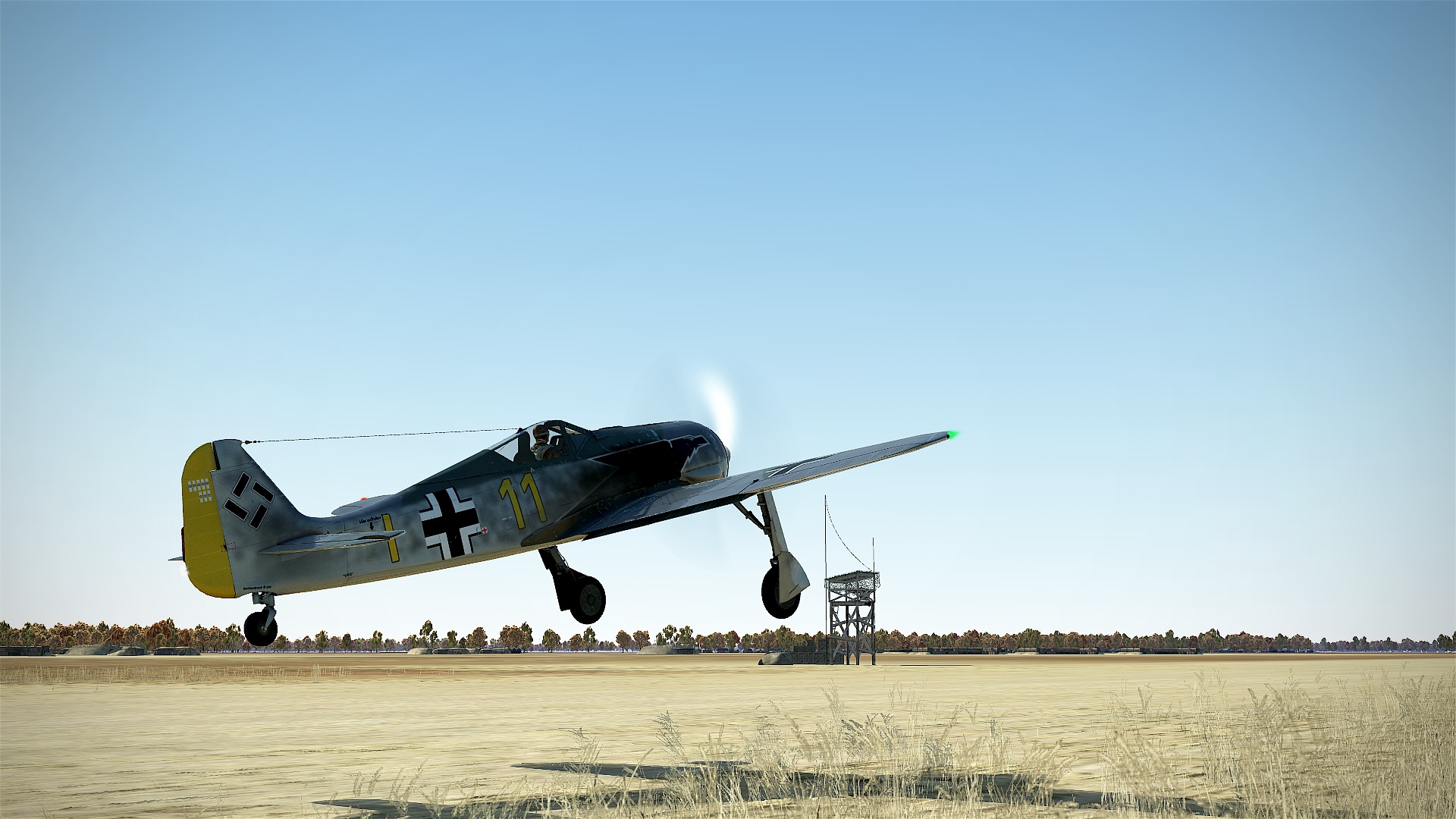 - Bei ca. 190 km/h leicht am Steuerknüppel ziehen und abheben.