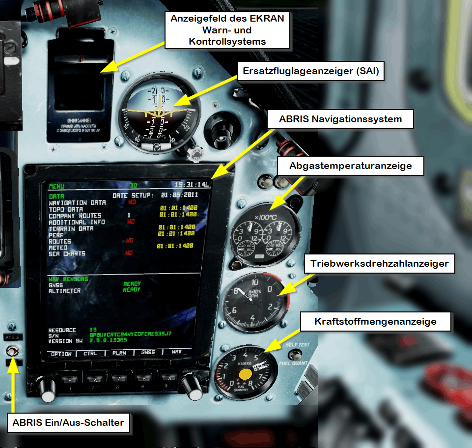 Die beiden wichtigsten sind das EKRAN Warn- und Kontrollsystem und das ABRIS Navigationssystem.