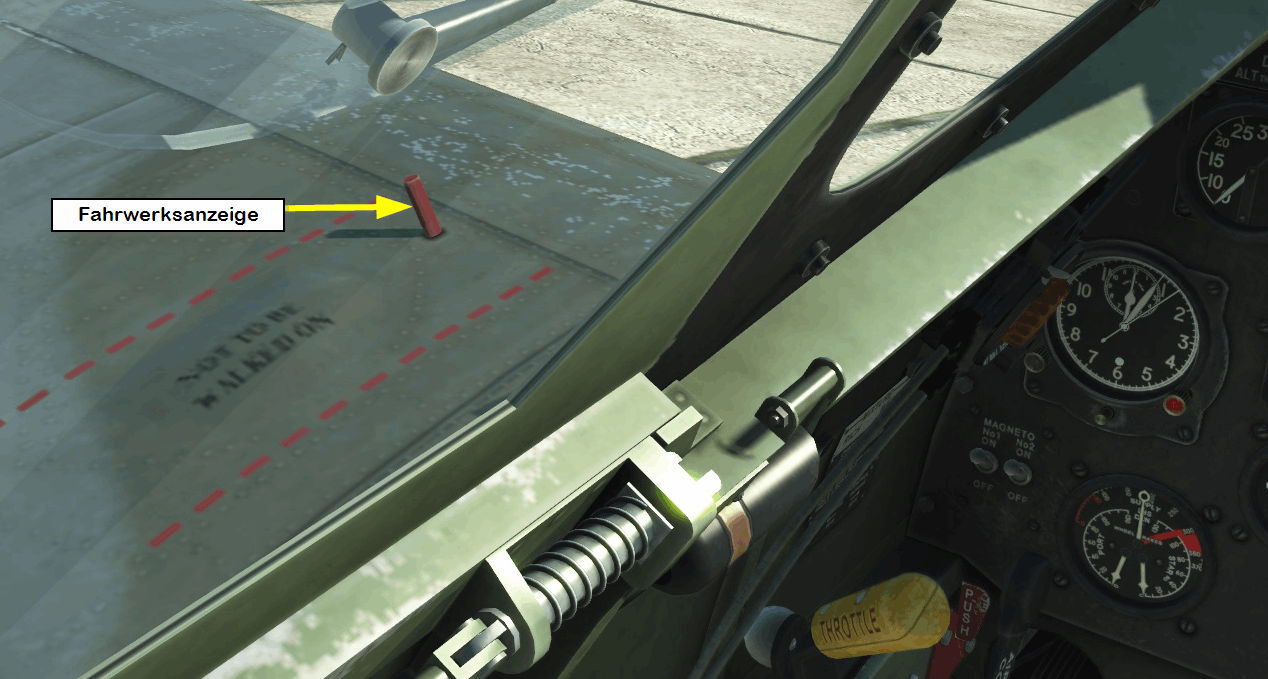 Auf den Flügeln ist eine mechanische Anzeige für das Fahrwerk. Ist das Stift voll ausgefahren, dann ist auch das Fahrwerk ausgefahren. Das ist praktisch, falls mal die elektronische Anzeige zerstört wurde.
