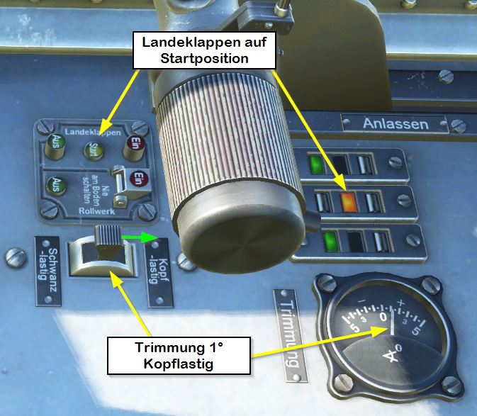 Startfreigabe vom Tower einholen (#, F1, F12).