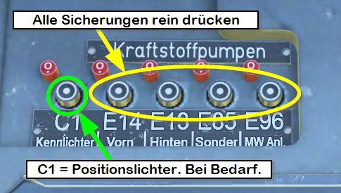 Die Navigationslichter werden eingeschaltet (C1 grün im Bild unten).