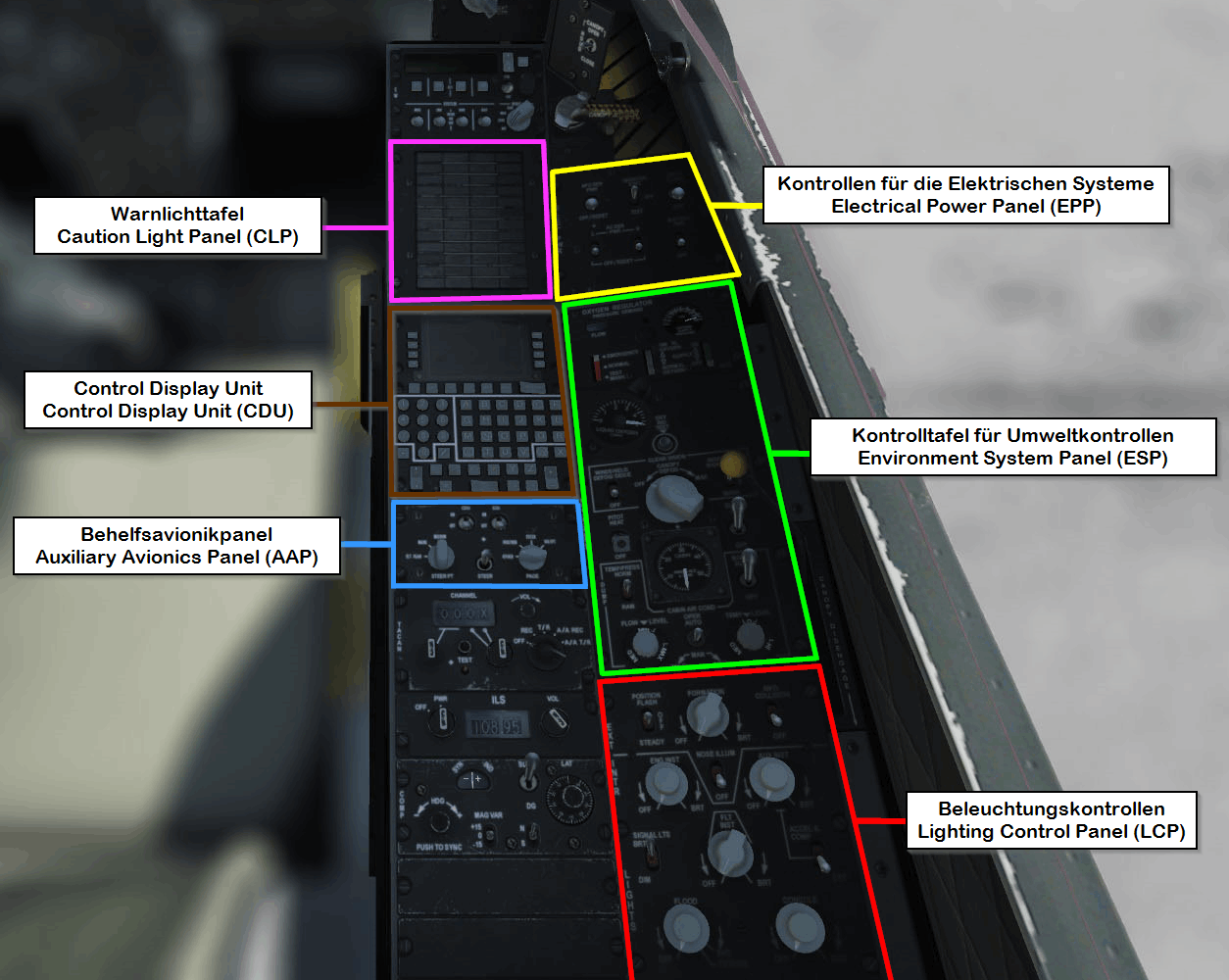 Auf dem Behelfsavionik-Panel (AAP) befinden sich die Schalter der CDU und EGI.