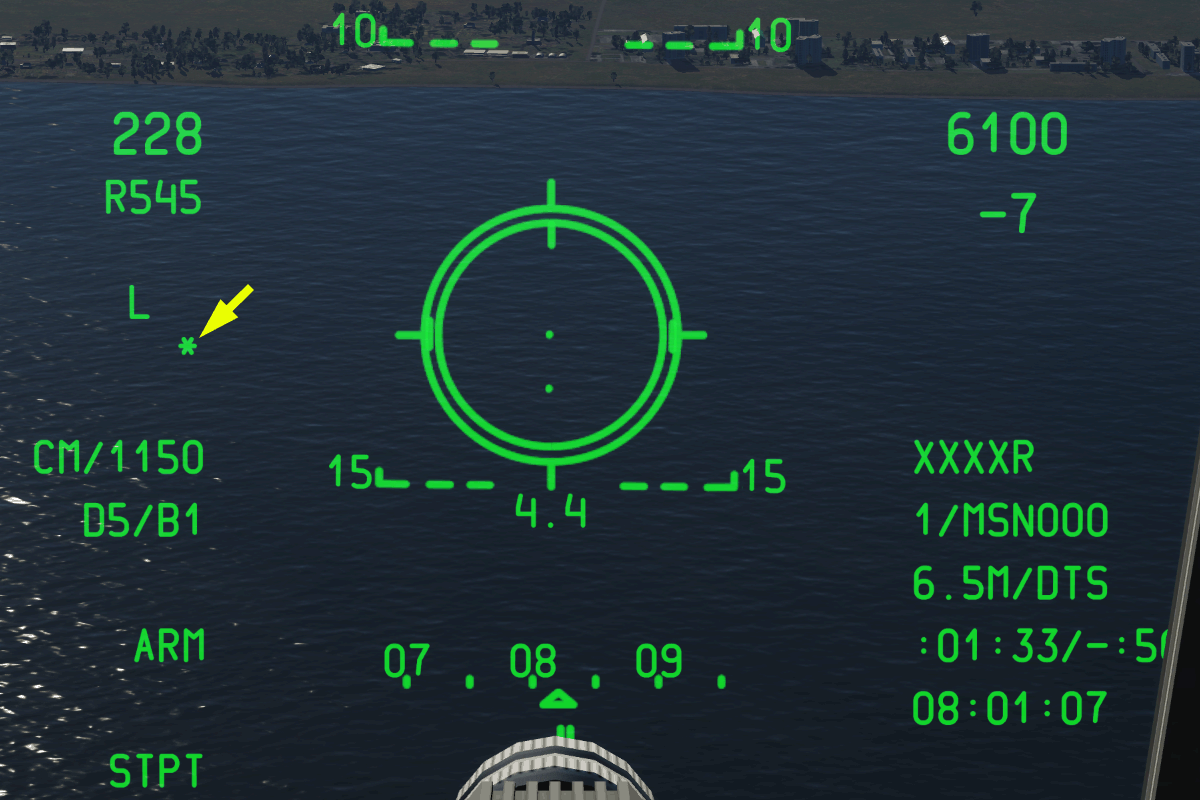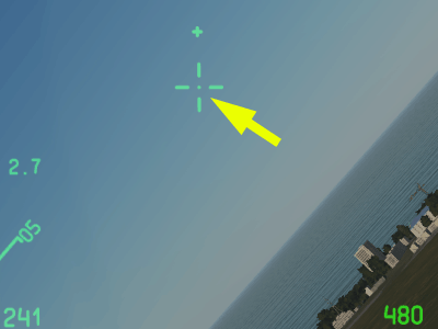 Wenn das CCIP-Kanonenvisier nicht über korrekte Daten verfügt, dann wird in der Mitte ein großes X dargestellt. Dies passiert z.B. wenn man ein Ziel anvisiert, welches sich höher als das eigene Flugzeug befindet.