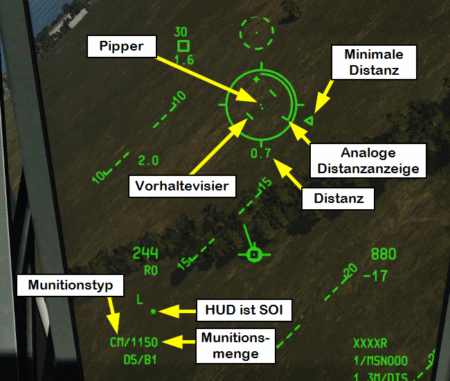 Das CCIP-Kanonenvisier ist das Standardvisier. Von allen Visieren liefert es die meisten Informationen.
