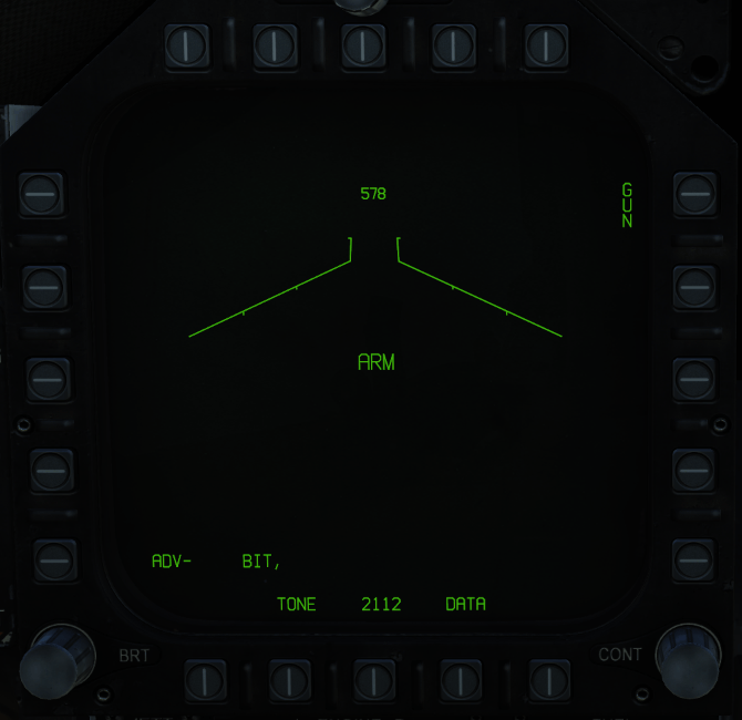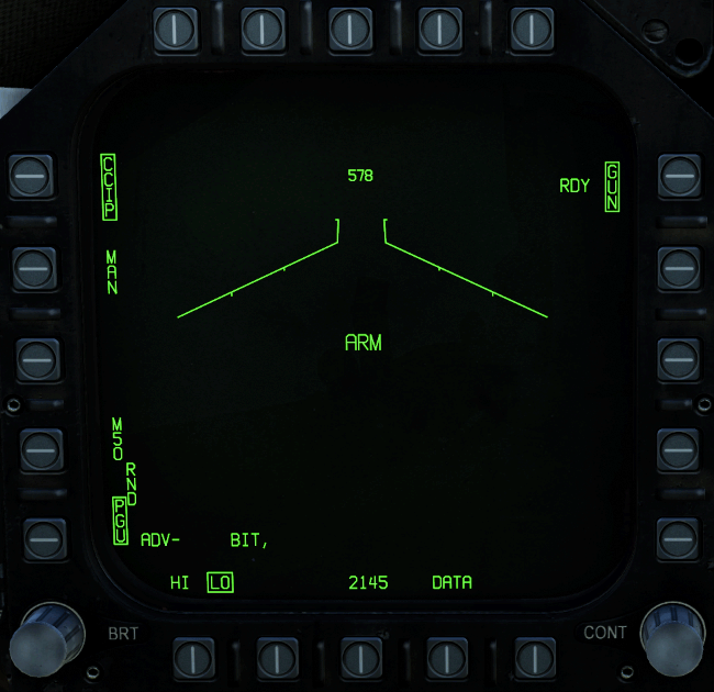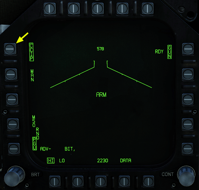 The mode for the Continuously Calculated Impact Point (CCIP) should already be selected. (PB05 CCIP) If not, select it now. It will then be boxed.