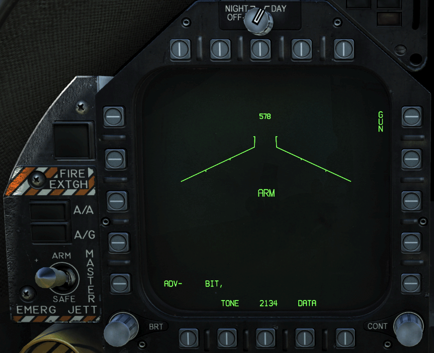 If you set the weapon main switch to ARM, you will see in the middle how the status changes from SAFE to ARM and in the lower right corner SIM for training mode is hidden.