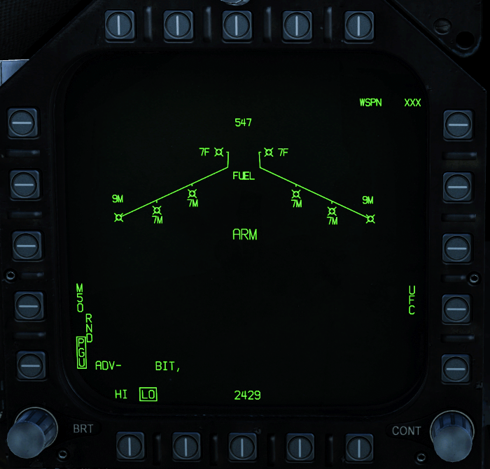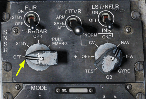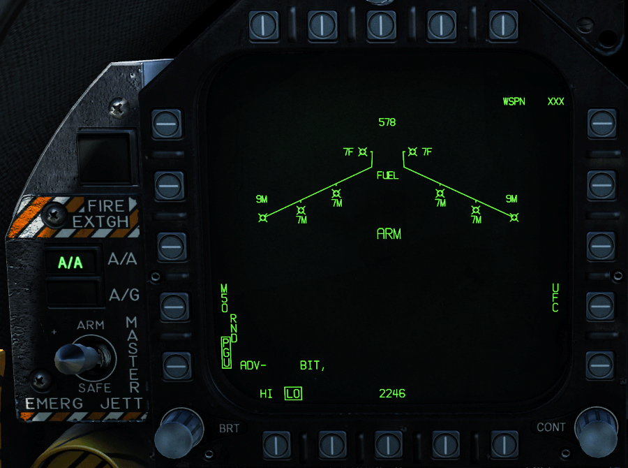 - Activate weapon main switch, i.e. move it up (MASTER ARM).