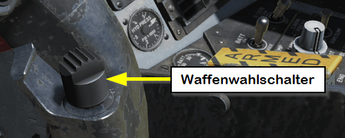 - By using the weapon selector switch on the control stick or middle LShift + X you select the onboard cannon for air combat. (A/A GUNS)