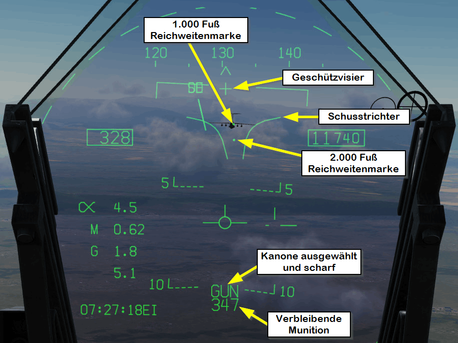 In the game there is a guided training mission, which explains the use of the onboard cannon in air combat in detail.