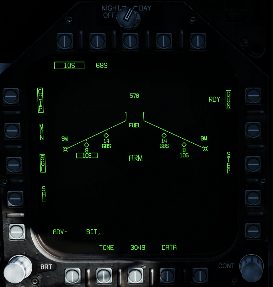 1. Activate in the SMS top right GUN by pressing the selection key, PB11. The display will then be framed.