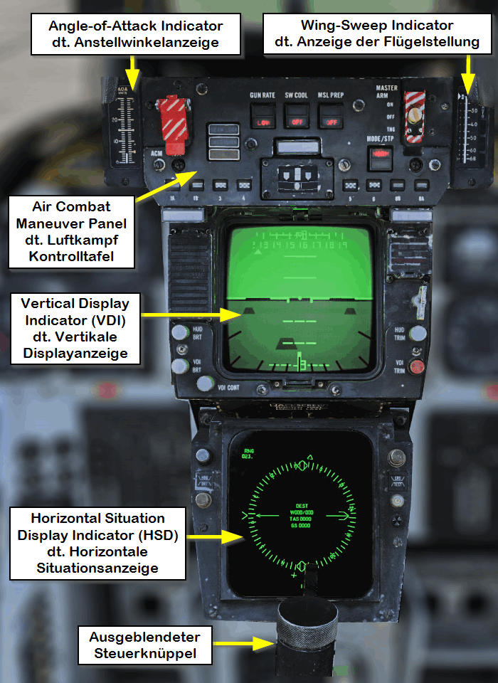 Im Bild unten wurde der Steuerknüppel mittles Backspace ausgeblendet, damit man das HSD besser erkennen kann.