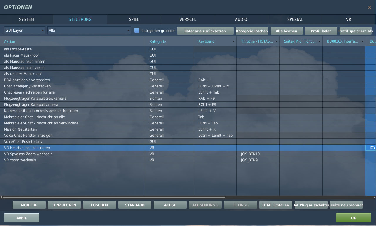 Suche die Funktion VR Headset neu zentrieren und weise ihr eine Joystick-Taste oder eine Tastenkombination zu.