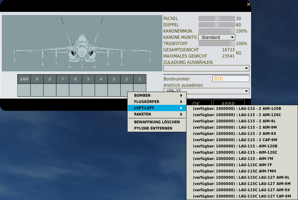 | 2 x AIM-9L | 9L | X | X | ||||||||