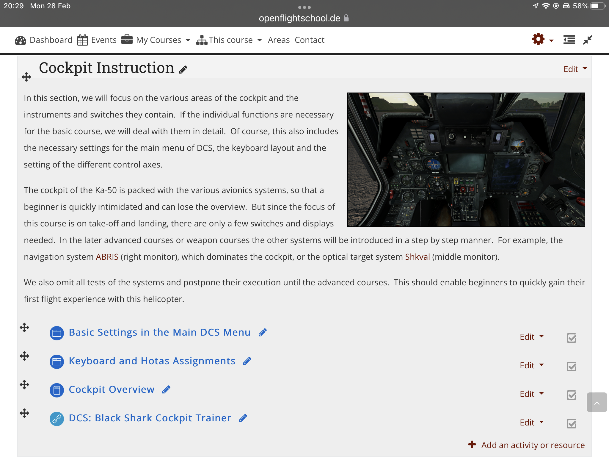 It is difficult to start in the middle of a sequence of workshops and all participants should attend all evenings, if possible. Depending on the complexity, this can be as many as 10 to 15 evening sessions. The material is often quite compressed and is aimed more at people who already have some experience and, for example, are looking to change to a new aircraft, but beginners with commitment should be able to complete it.